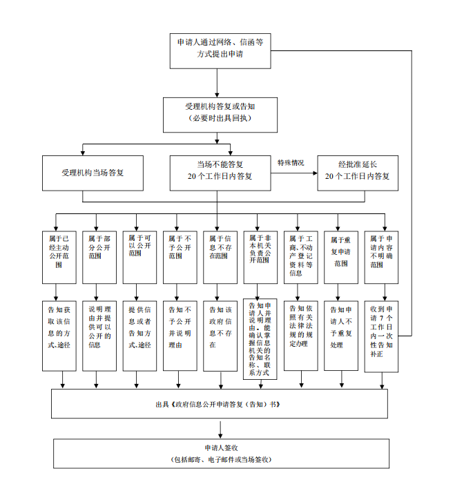 (1)本机关收到《申请表》后,将从形式上对《申请表》的要件是否完备进行审查,对于要件不完备的申请予以退回,要求申请人补正。对于《申请表》填写完整且有关身份证明材料齐全的申请将正式登记受理,根据申请的内容,本机关收到申请(指可以正式受理的申请)之日20个工作日内予以答复。