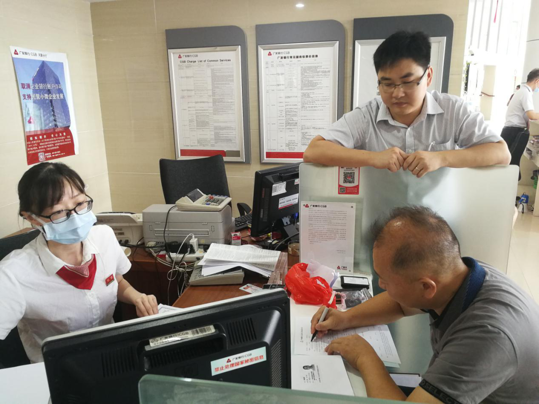 县“代办制”办公室工作人员协助河源登通实业有限公司办理营业执照、银行开户及税务登记等相关事项。