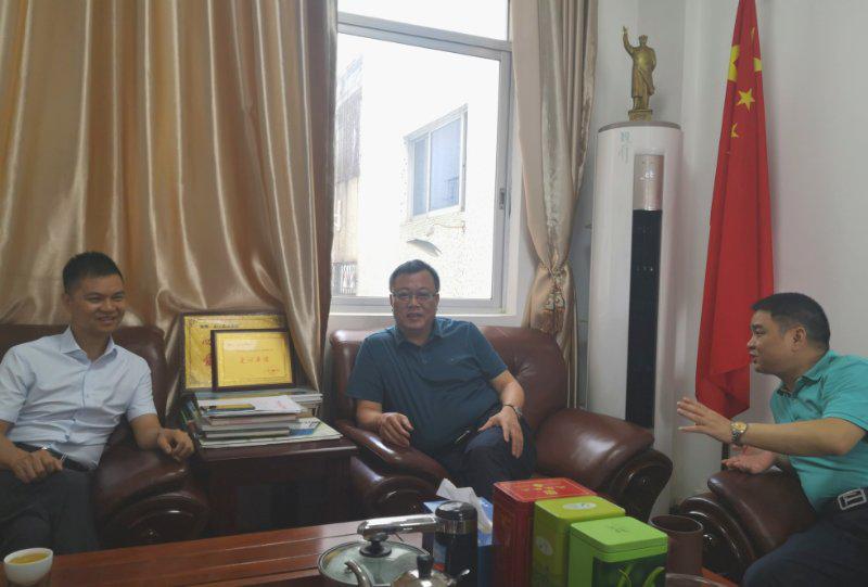 7月4日,县招商局局长骆小龙与龙川县“美丽中国”应急产业园建设工作组组长赵保军等人深入探讨交流“美丽中国”项下产业项目的经营理念、招商方向等。