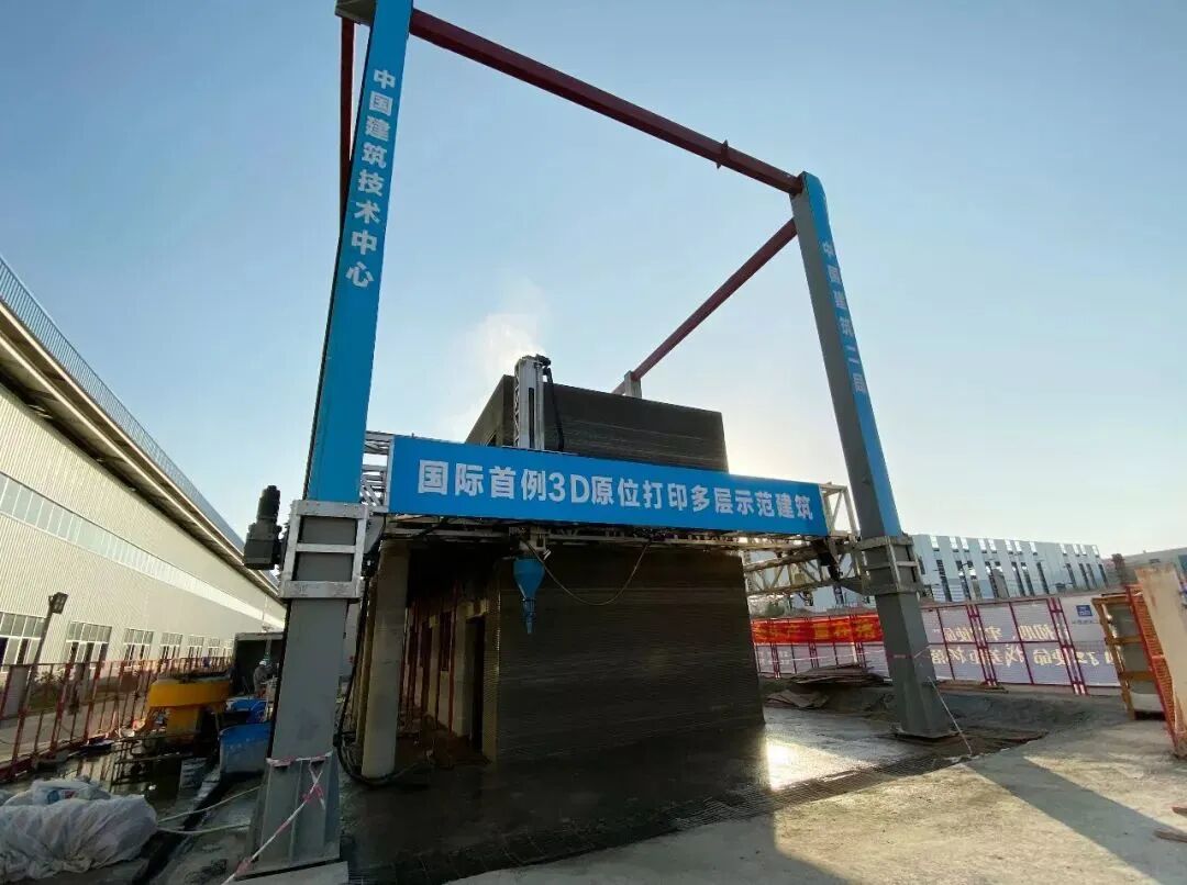 这栋总建筑面积230平方米,总高度7.2米的双层示范建筑楼设置有3D打印展厅、劳模和工匠人才创新工作室、党建活动室以及车间办公室,旨在向外界展示原位3D打印建造技术的魅力,推动现代建筑产业的转型升级和融合发展。