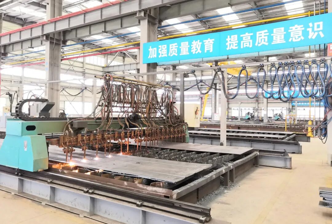 在中建二局阳光智造有限公司钢结构生产车间内,技术工人们正在生产应用于中石油基础设施项目建设的钢结构产品。据中建二局阳光智造公司团支部书记张文宇现场介绍,这批钢结构产品是该公司首次开拓石油化工类基础设施项目,框架协议总用钢量达12万吨,预计合同额达1.6亿元,对公司今后的发展具有开创性的意义。