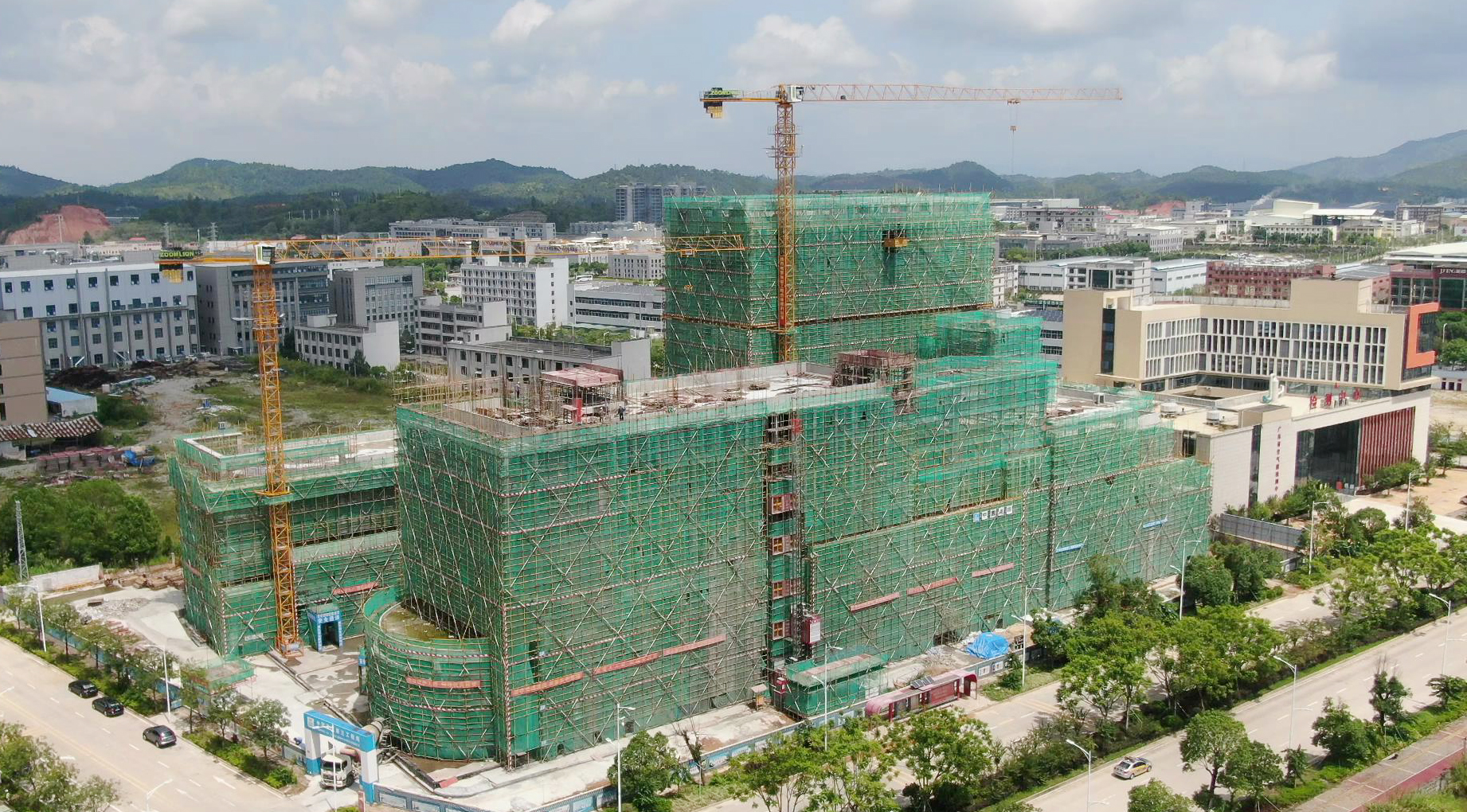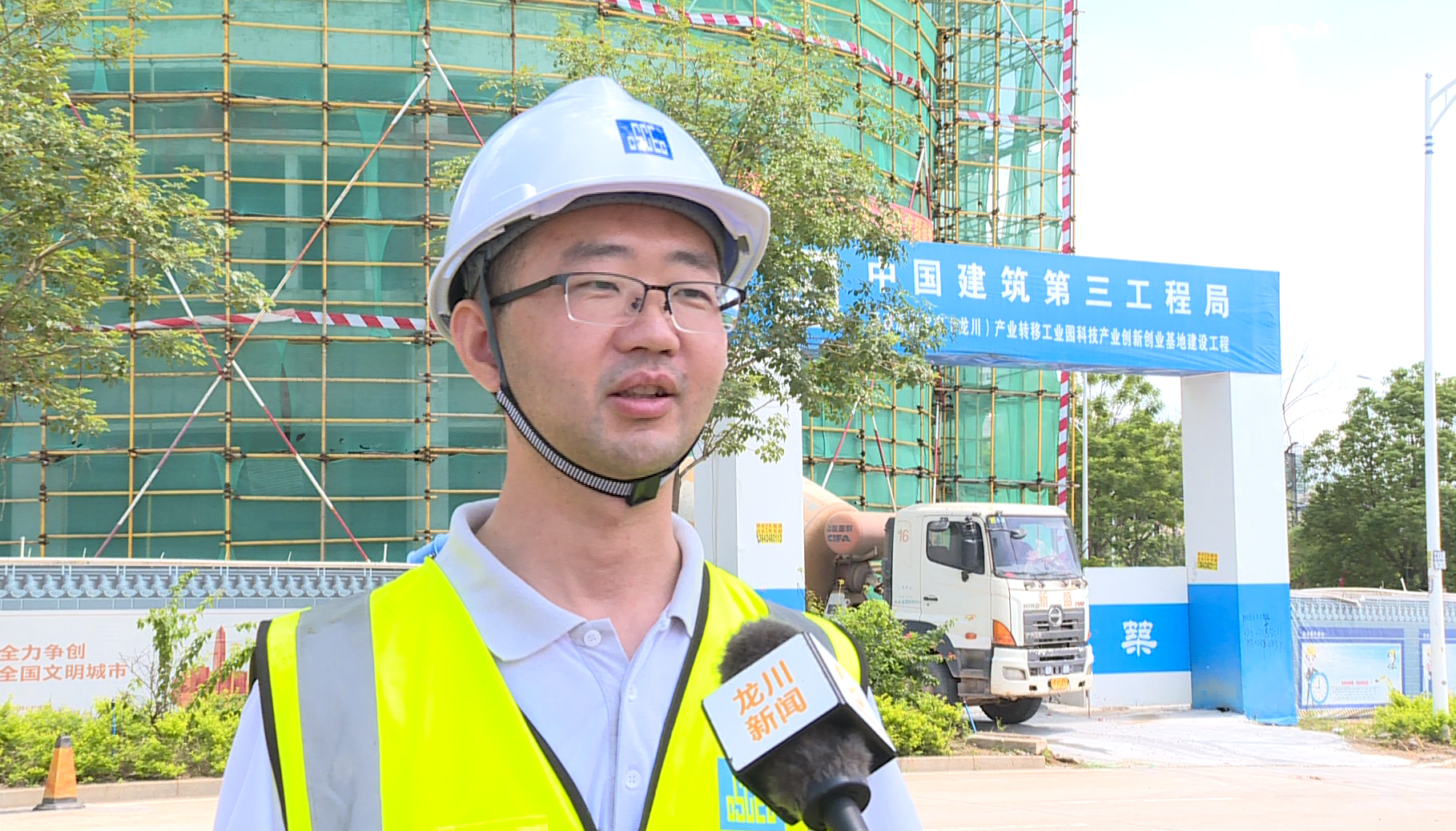 “现在‘双创’基地主体结构已经全部封顶,目前正在进行砖的砌筑,水电、消防的安装工程。下一步,我们就准备进行室外的装修以及玻璃幕墙的安装,预计今年年底就能投入使用。非常感谢龙川县各级党委政府,特别是工业园管委会对我们项目的大力支持。”中建三局项目部副经理蒋旭东现场介绍道。