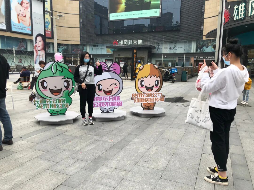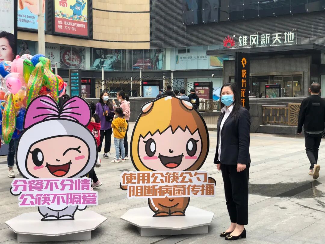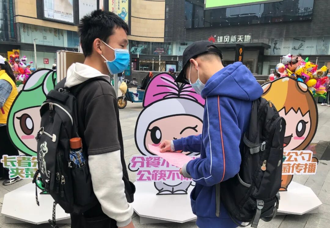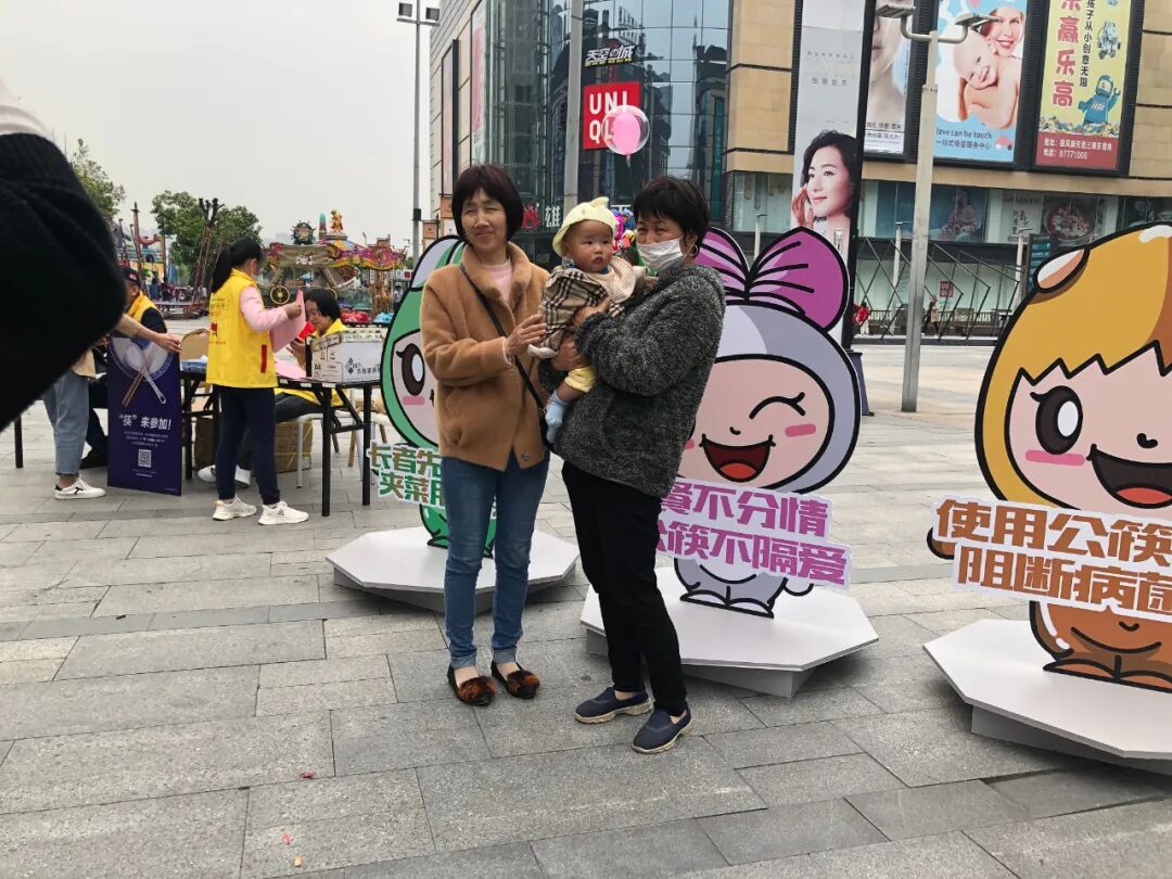 “使用‘公筷公勺’可以阻断病菌传播途径,保护自己和家人的身体健康……”在活动现场,志愿者们一边将倡议书发放至市民手中,一边向市民介绍使用公筷、公勺这种健康用餐习惯,并引导他们与设置在广场边的文明城市吉祥物合影,然后在朋友圈发送照片附文字“#‘筷’乐晒图#使用公筷公勺,养成文明好习惯”!