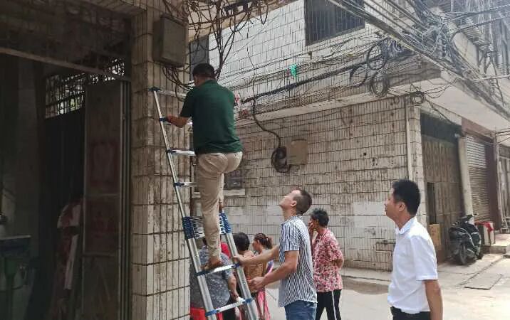 整治杂乱线路!龙川广电“蜘蛛侠”烈日下出战~ | 创文在行动